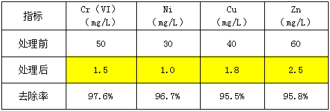 经过上述处理后,该企业排放的污水中重金属离子的浓度大大降低,各项指标均达到了排放标准。具体数据如下:
